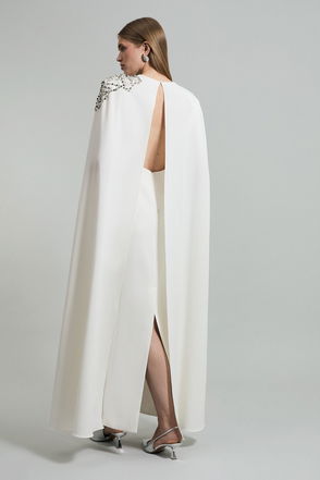 Placed Floral Crystal Embellished Tailored Drama Cape Maxi Dress