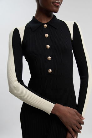 Ponte Halter Neck Front Zip Trim Midi Dress