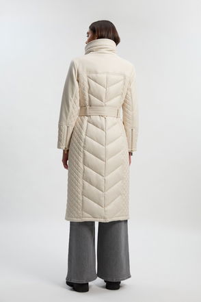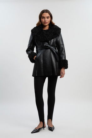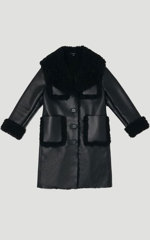 Padded Faux Leather & Faux Fur Mix Midi Coat