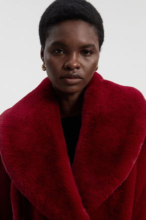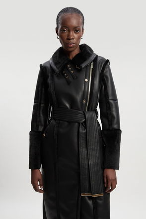 Faux Fur Buckle Detail Belted Biker Midi Coat