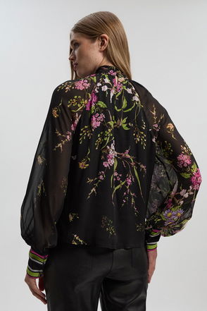 Floral Border Print Viscose Balloon Sleeve Shirt