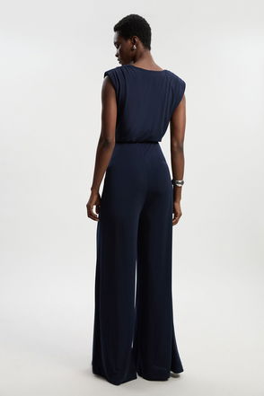 Tailored Compact Stretch Viscose Drape Detail Jumpsuit