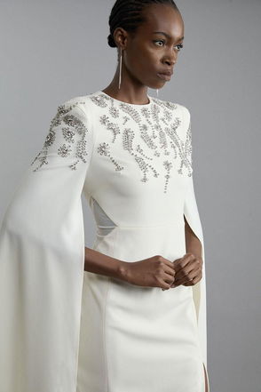 Compact Stretch Viscose Crystal Embellished Cape Maxi Dress