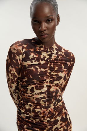 Butterfly Viscose Satin Cowl Detail Belted Maxi Dress