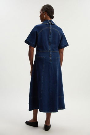 Plus Size Stretch Denim Tab Belt Detail Midi Dress