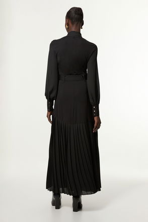 Viscose Rib Pu Mix Tab Detail Pleated Knit Midi Dress