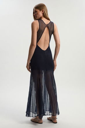 Sleeveless Viscose Blend Knitted Dress With Sparkle Sheer Details