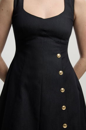 Tailored Denim Sleeveless Full Skirted Midi Dress