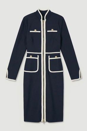 Figure Form Bandage Knit Piping Detail Military Midi Dress