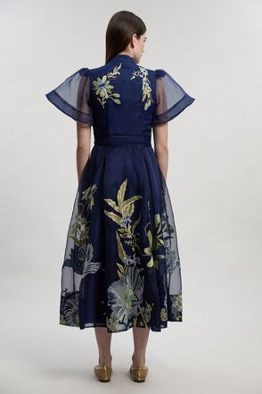 Botanical Embroidery Organdie Angel Sleeve Midi Dress