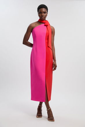 Soft Tailored Colour Block Bow Midi Dress