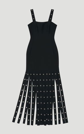 Strappy Eyelet Detail Fringe Figure Form Midi Dress
