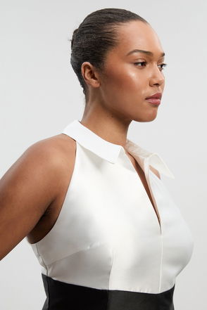 Twill Contrast Tux Tailored Dress