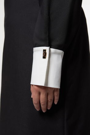 Plus Size Twill Contrast Tux Tailored Full Skirted Shirt Dress
