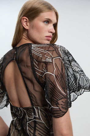 Hand Embroidered And Sequin Organdie Deep V Woven Maxi Dress