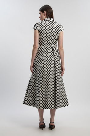 Spot Jacquard Square Neck Tailored Full Skirted Midi Dress