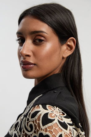Petite Techno Cotton Woven Maxi Shirt Dress With Gold Clasps