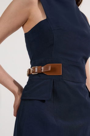 Petite Premium Tailored Linen Tab Waist Pencil Midi Dress