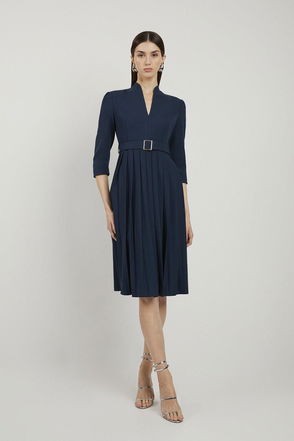Petite Tailored Structured Crepe Pleated Midi Dress