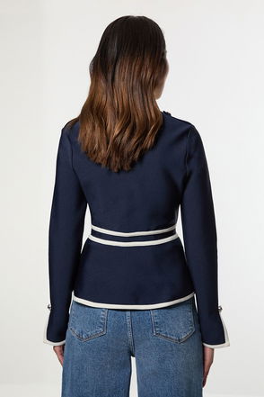 Figure Form Bandage Military Contrast Piping Knit Split Hem Jacket