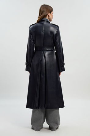 Wool Pu Mix Tailored Belted Trench Maxi Coat