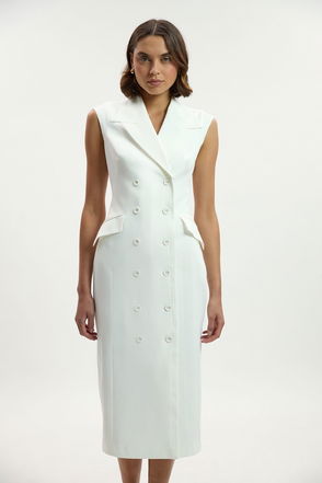 Tailored Crepe Tipped Tailored Midi Shirt Dress