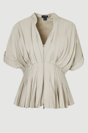 Tencel Cotton Contrast Zip Up Woven Peplum Top