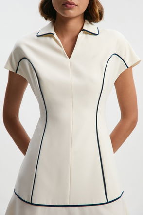 Tailored Crepe Tipped Tailored Mini Shirt Dress