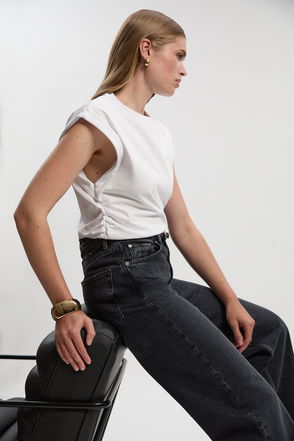 Pleated Neck Tie Detail Woven Short Sleeve Shirt