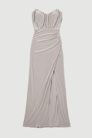Petite Drapey Crepe Bandeau Split Maxi Dress