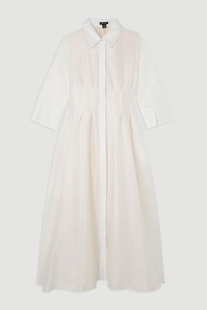 Tailored Crepe Pleated Midi Shirt Dress