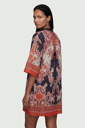Scarf Mirrored Print Cotton Voile Kimono Beach Mini Dress