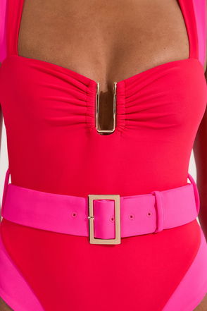 Contrast Panelled Bandeau Swimsuit With Belt