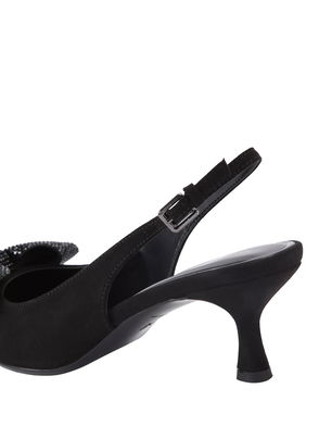 Tilly Bow Gem Kitten Heel Court Shoes, Black