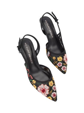 Aria Low2 Floral Kitten Heel Court Shoes, Black/Multi
