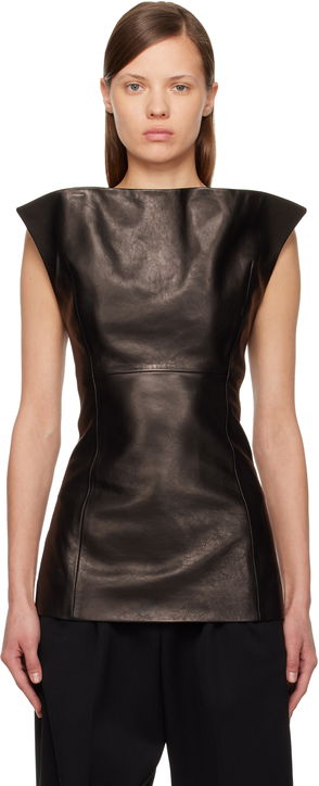 Black Corinne Leather Top