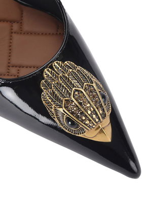 Large Eagle Patent Leather Slingback Court Shoes, Black