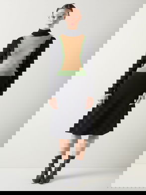 Natalia Colourblock Cotton Fine Gauge Merino Dress Black