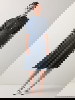 Esme Plain Cotton Chambray Pearl Button Dress Blue