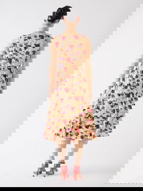 L.K.Bennett Mimi Floral Pure Silk Dress, Cream/Black