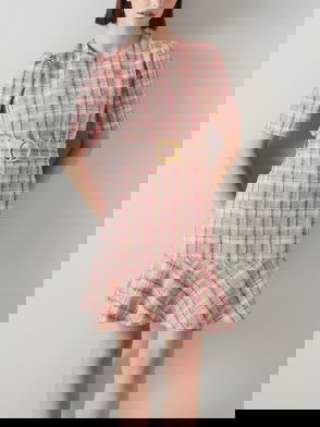 Eliza Cotton-Raffia Blend Check Tweed Dress