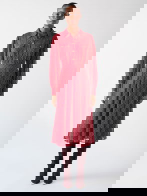 Red Cody Red Polka Dot Print Pocket Shirt Dress