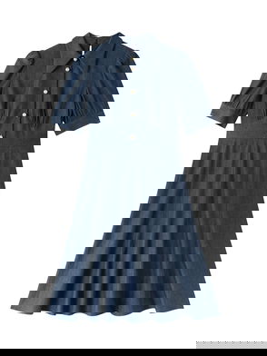 Esme Plain Cotton Chambray Pearl Button Dress Blue