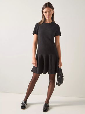 LKB London Zig Tweed Diamante Bows Mini Dress, Black