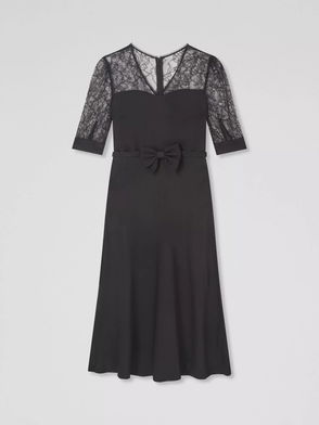 L.K.Bennett Madalena Lace Insert Belted Midi Dress, Black