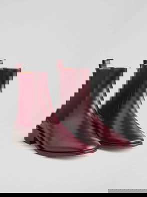 Logo Burgundy Leather Ankle Boots
