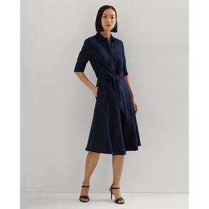 Buckle-Trim Herringbone Cap-Sleeve Dress