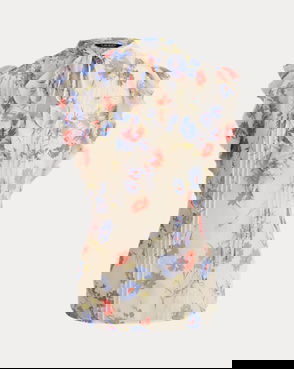 Floral Pintucked Tie-Neck Blouse