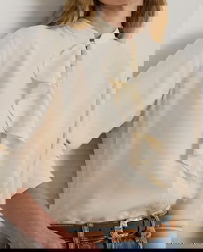 Ruffle-Trim Georgette Tie-Neck Blouse