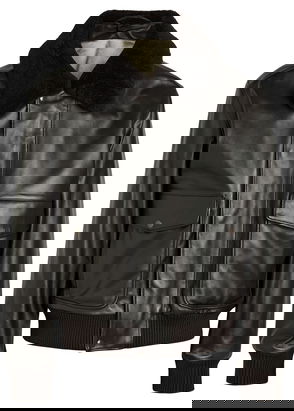 Brown Shearling Collar Blouson Leather Jacket